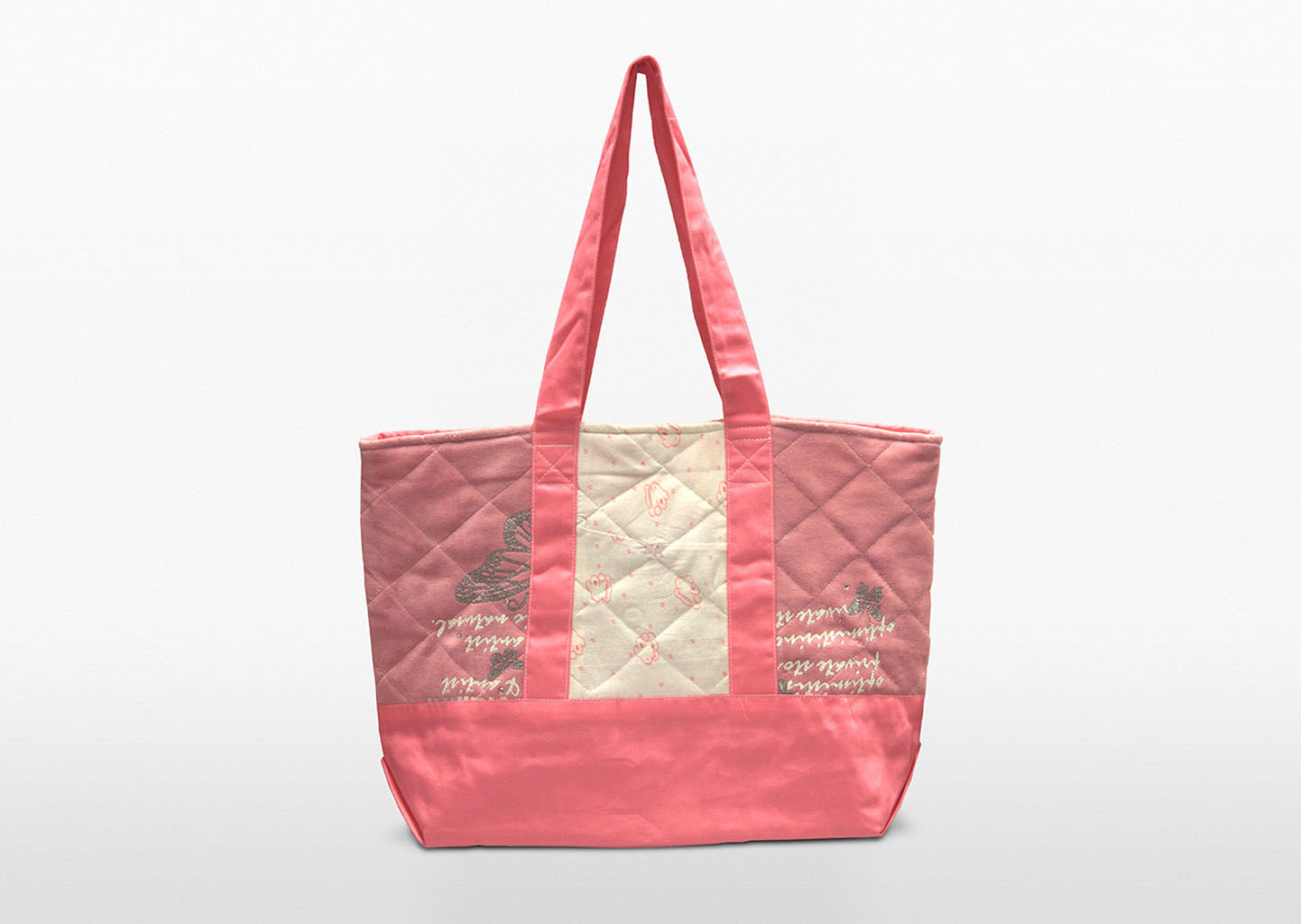 single coral red parent bag, handle hanging, static shot, white background | Second-hand Retail Platform – Green Baby Garden :: Upcycling Product Development