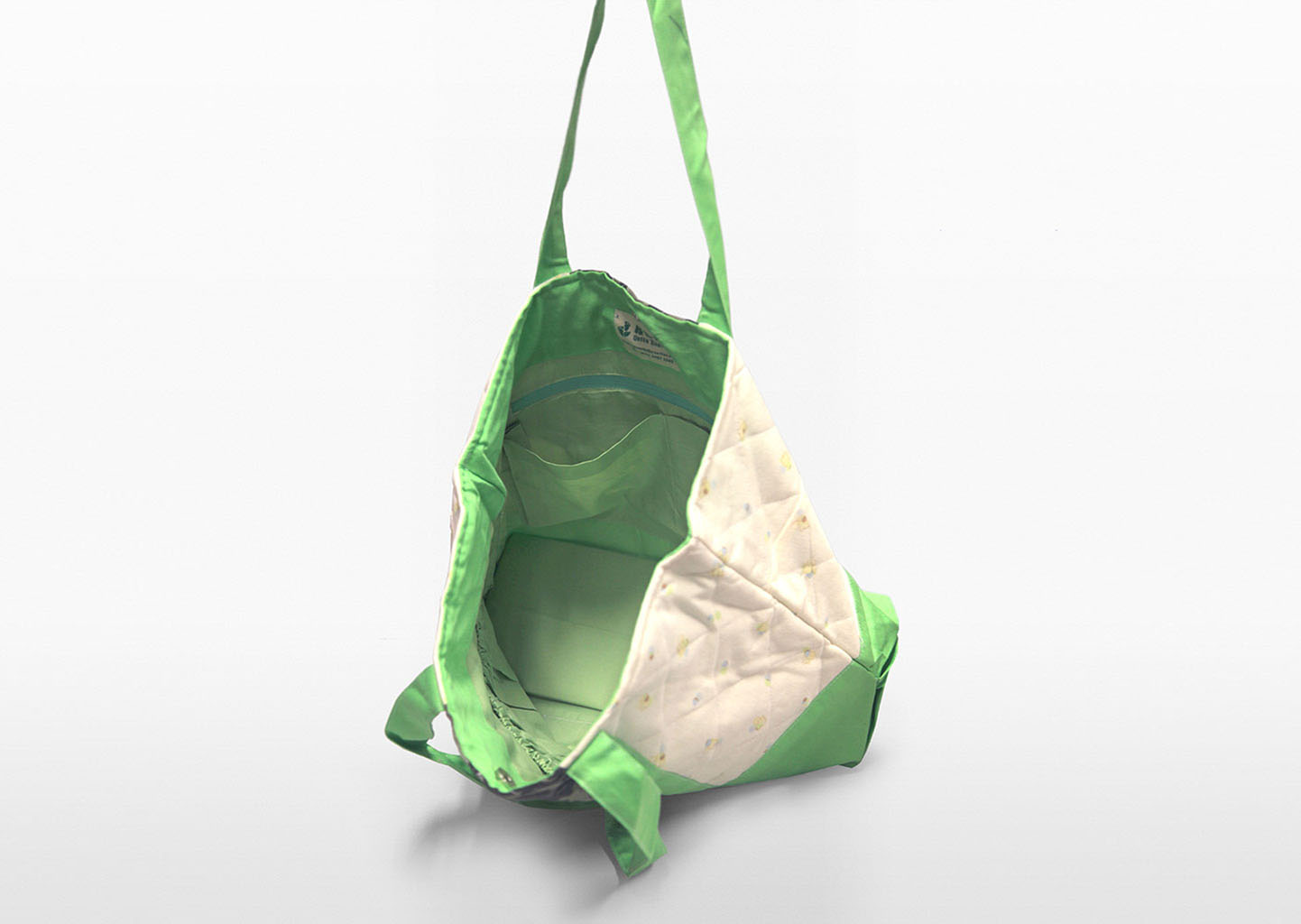 Green Baby Garden :: Upcycling Product Development :: melon green parent bag hanging to show interior