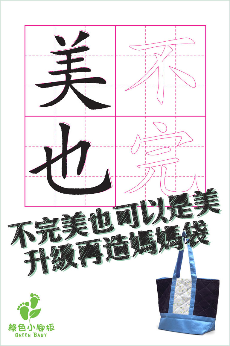 post poster “Chinese calligraphy, missed writing 2 characters representing imperfect” | Second-hand Retail Platform – Green Baby Garden :: Launch Promotion Campaign